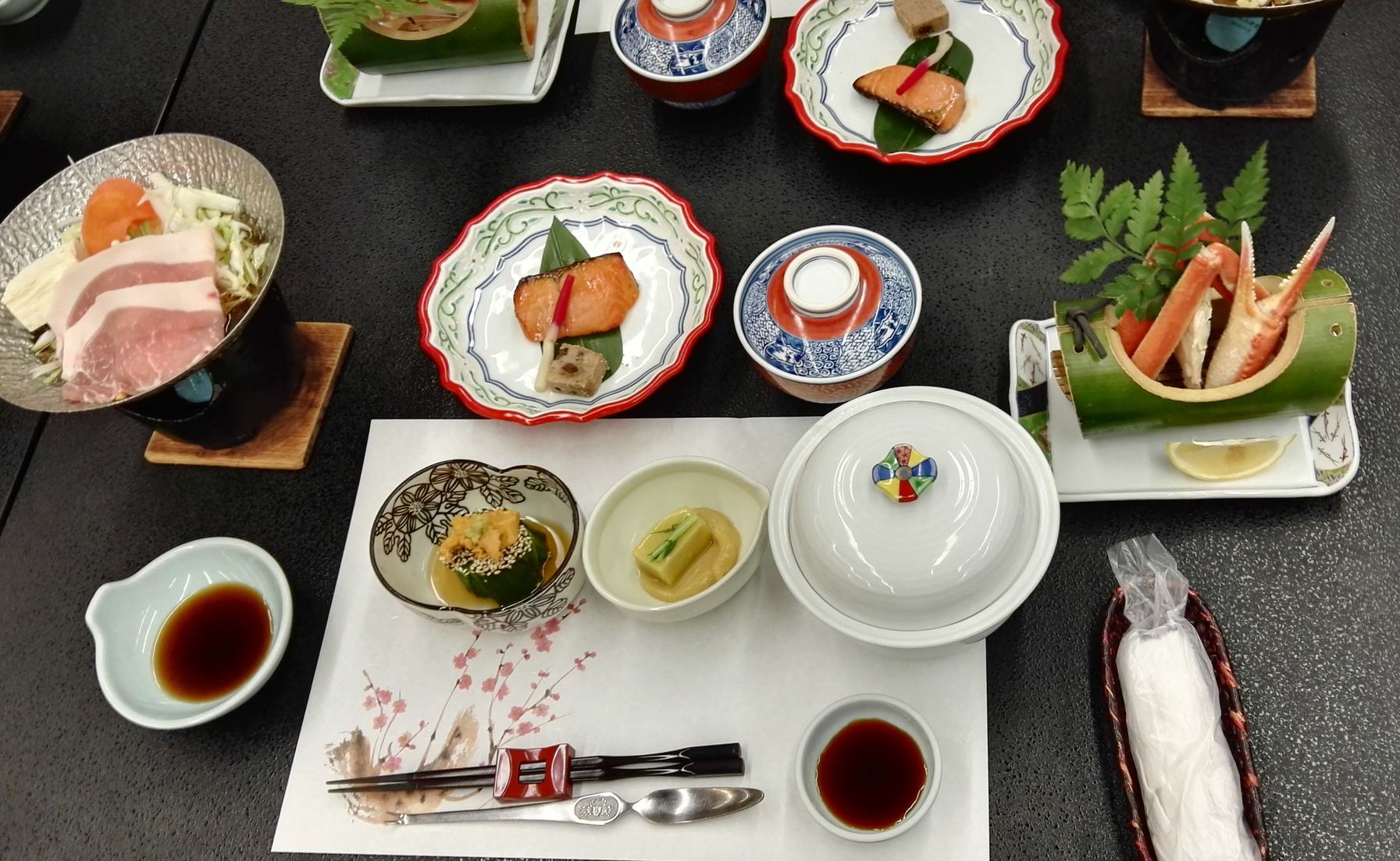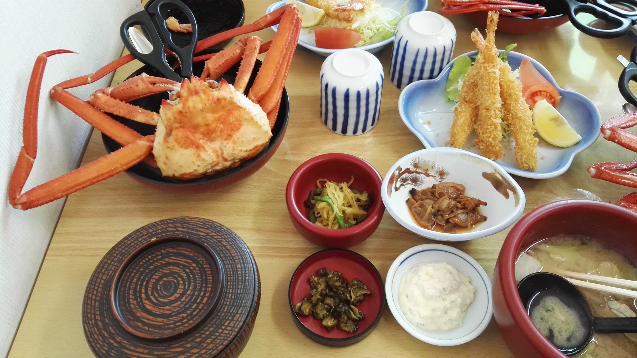 | 好吃的*1 好多没见过的东西。什么,原来是刺身?!被我放到小锅里煮熟了呜呜 | 天妇罗&好大的蟹! |